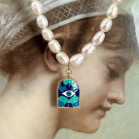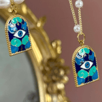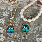 Pearl Evil Eye Enamel Necklace featuring a striking Turkish evil eye design. This statement necklace is a perfect gift for Mom or a memorable graduation present, blending elegance with cultural significance.